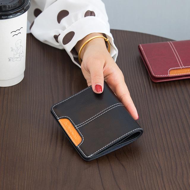 二つ折り 財布 レディース カジュアル カード入れ レザー おしゃれ デザイン 使いやすい 軽量 レトロ ヨーロピアン シンプル ソフト ウォレット コンパクト オフィス ビジネス OL 大人 かっこいい 欧米 流行 柔らかい 黒 ピンク ワインレッド 深緑