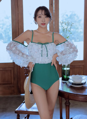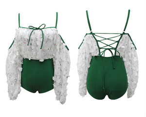 スイムウェア ワンピース 水着 セクシー ワイヤー パッド付き 体系カバー 長袖 レース フリル バックリボン 伸縮性 胸元 谷間魅せ 盛れる おしゃれ 存在感 キュート 花柄 10代 20代 レディース 女性 体系 カバー 着痩せ デート プール 海 夏 リゾート 美脚 サイズ M L XL