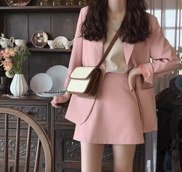ピンクセットアップ ジャケット ミニスカート スーツ ミニ ミニ丈 袖あり 2way 3way 上下セット 2点セット ツーピース お得 きれいめ シンプル カジュアル おしゃれ レトロ こなれ感 S M L XL ピンク 無地 春 秋 10代 20代 レディース 女性用 女の子 オフィス ビジネス OL 通勤 学生 デート 休日 お出かけ 女子会 着回し 普段使い 双子 韓国 韓国系 オルチャン トレンド 流行