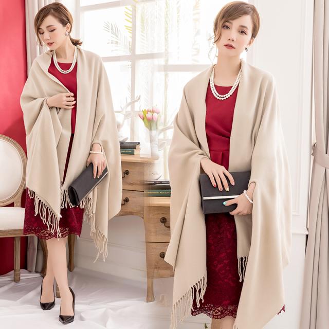 ビッグ ショール スカーフ 大きい サイズ マント イブニング ドレス マフラー レディース ファッション コーデ スタイル 高見え 格上げ シンプル カジュアル ナチュラル ゴージャス 華やか 存在感 デート パーティー イベント リゾート 旅行 春 秋 冬 4色 アプリコット グレー ネイビーワインレッド