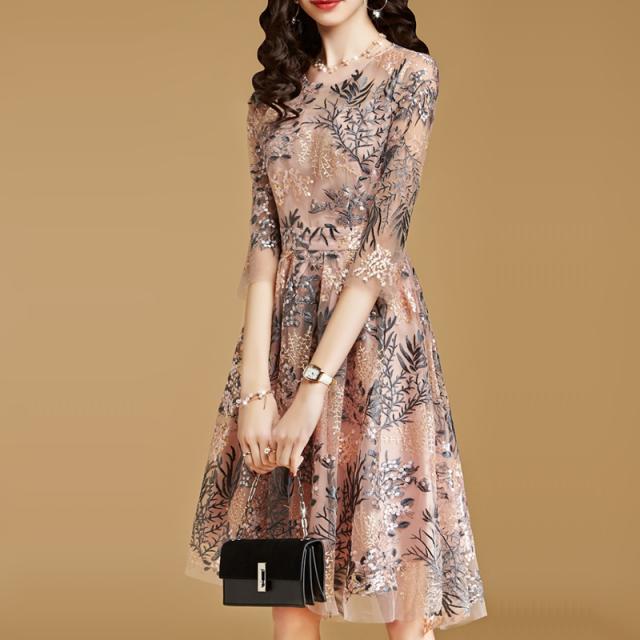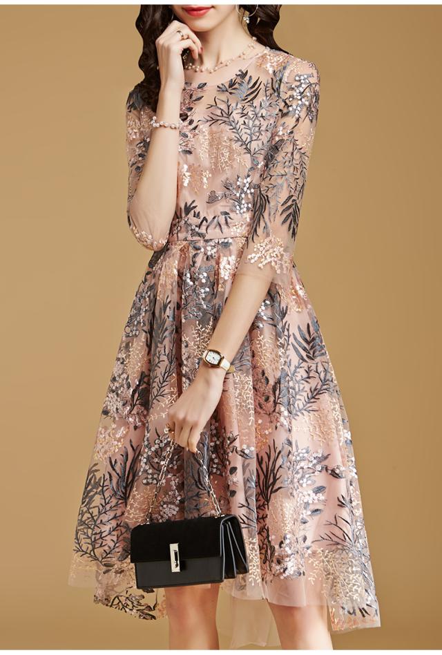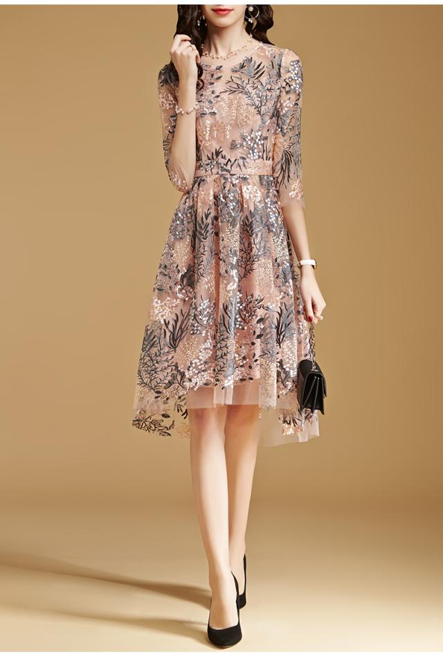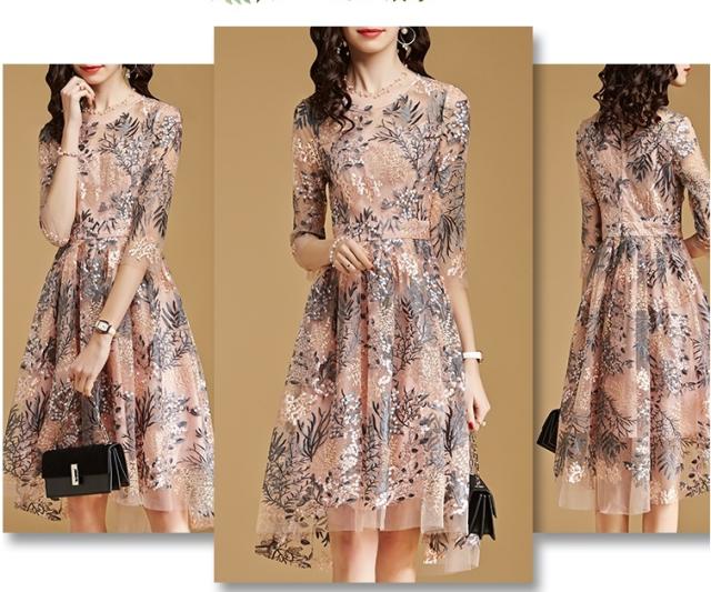 レース ワンピース ミディアム丈 刺繍 レース クール モード系 セクシー エレガント モダン大人 上品 おしゃれ 花柄 入学式 卒業式 謝恩会 結婚式 二次会 トレンド 春 夏 サイズ S M L XL 2XL