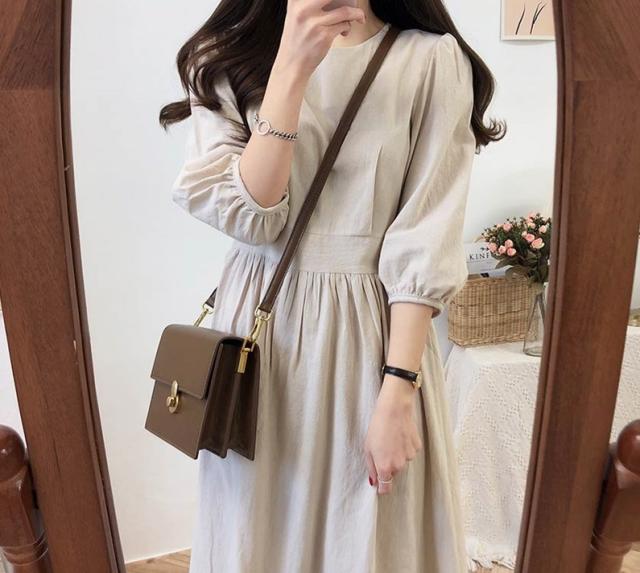 ワンピース ミモレ丈 七分丈 ロングスカート 7分袖 七分袖 Aライン