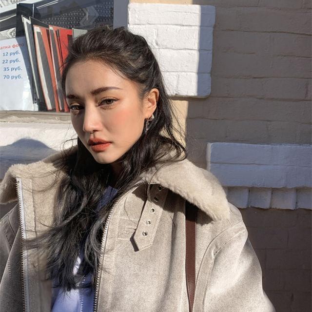 スエード コート ジャケット 冬 ウールコート オーバーサイズ ムートン 暖かい 防寒 ボア もこもこ ふわふわ 裏起毛 襟付き フロントボタン ジッパー ドロップショルダー レディース ルーズ かわいい 大人 お出かけ 着回し カジュアル XL 2XL