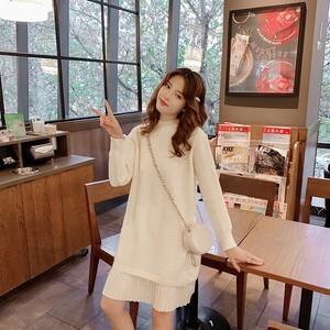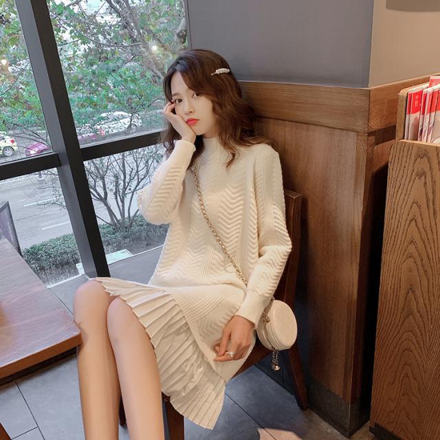 ニットワンピース コンビ プリーツ 膝上 ハイネック タートルネック ホワイト ドッキング セーター かわいい おしゃれ 大人 ラブリー キュート ガーリーデート お出かけ イベント 旅行 デイリー 韓国 スタイル 高見え モテフリーサイズ 秋冬