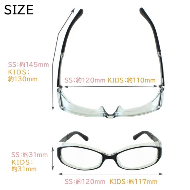 | 顔幅(約): SS:120mm、キッズ:110mm テンプル長(約): SS:123mm、キッズ:117mm | |