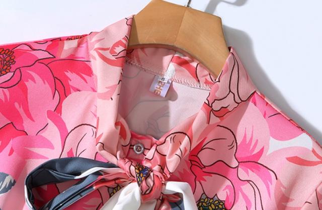 フラワープリントドレス ドレス パーティードレス ロングドレス ステージドレス 舞台衣装 ロング ロング丈 袖あり 長袖 Aライン プリーツ リボン きれいめ 上品 おしゃれ アジアン チャイナ風 花柄 小花柄 フラワー レディース パーティー イベント 高見え シーズンレス M L