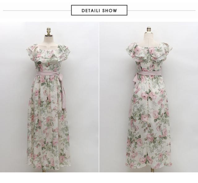 オフショルダー フラワー ワンピース 人気 通販 おすすめ フレア スカート ミモレ丈 オフショルダー Aライン シフォン リボン ベルト ウエストマーク ウエストリボン 透け感 シースルー かわいい 大人 きれいめ 上品 おしゃれ こなれ感 20代 30代 デート 通学 お出かけ 旅行