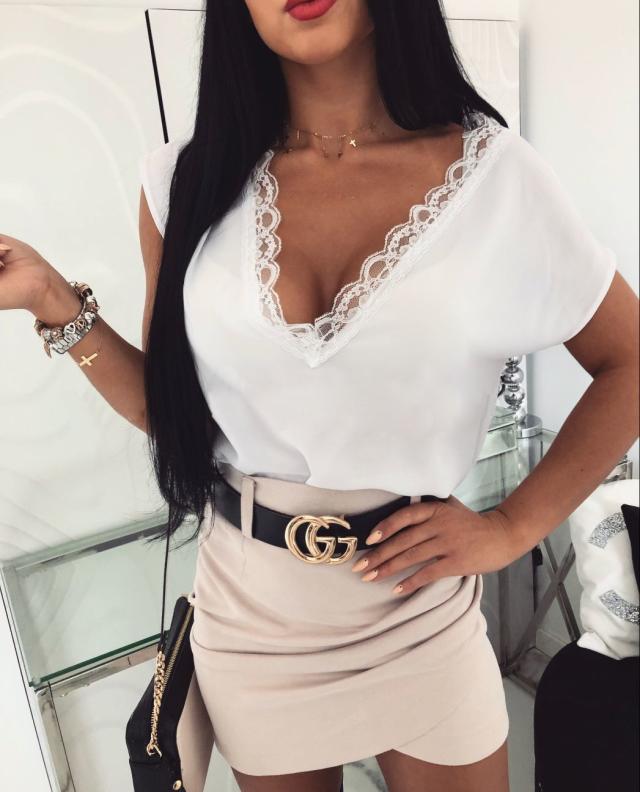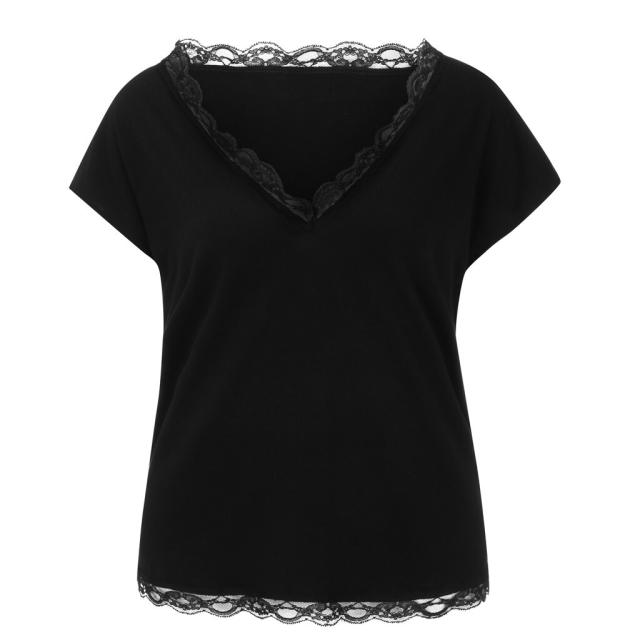 レディース トップス 人気 通販 おすすめ Tシャツ 半袖 セクシー 深Vネック 花柄 レース トリム 肌魅せ 無地 シンプル 袖あり カットソー セクシー おしゃれ 大人 可愛い お出かけ デート 旅行 休日 大人女子 カジュアル 普段着 普段使い 着回し 夏 10代 20代 30代 白 黒