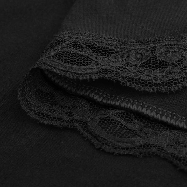 胸元と裾部分に花柄レースを施したTシャツ♪