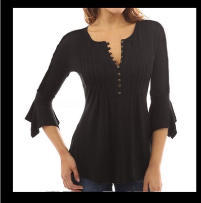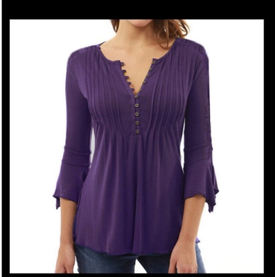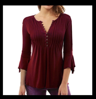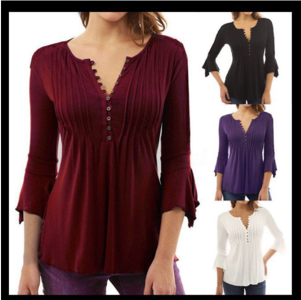トップス レディース Tシャツ 7分袖 袖あり ペプラム 胸元 切り替え 綿 コットン ラウンドネック Vネック フロントボタン フレア袖 スリム 無地 シンプル お洒落 おしゃれ お出かけ デート 大人 大人女子 通勤 通学 学生 旅行 休日 普段使い 普段着 着回し 10代 20代 30代 春 夏 秋 大きいサイズ S M L XL 2XL 3XL ブラック 黒 パープル 紫 ホワイト 白 ワインレッド