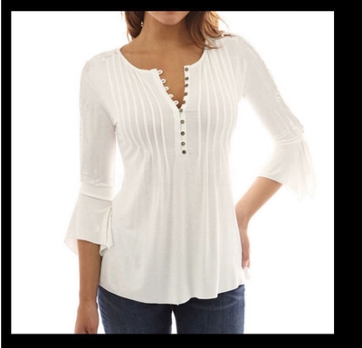 フロントボタンがアクセントになった7分袖のTシャツ♪
