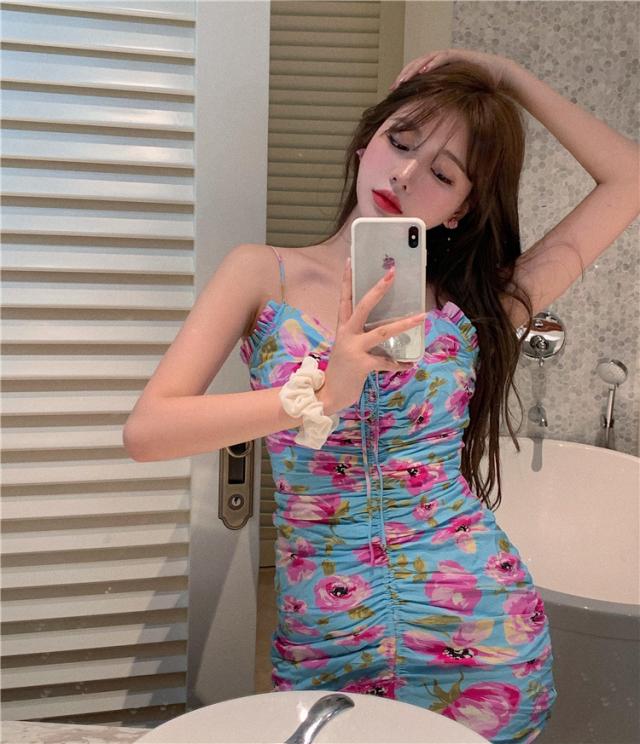 ドレス セクシー 花柄 ロマンチック 大人可愛い 上品 きれいめ シンプル カジュアル レトロ ナチュラル ブライダル ステージ 結婚式 二次会 2次会 披露宴 お呼ばれ 挙式 クラシック 主役級 夏 S M ブルー