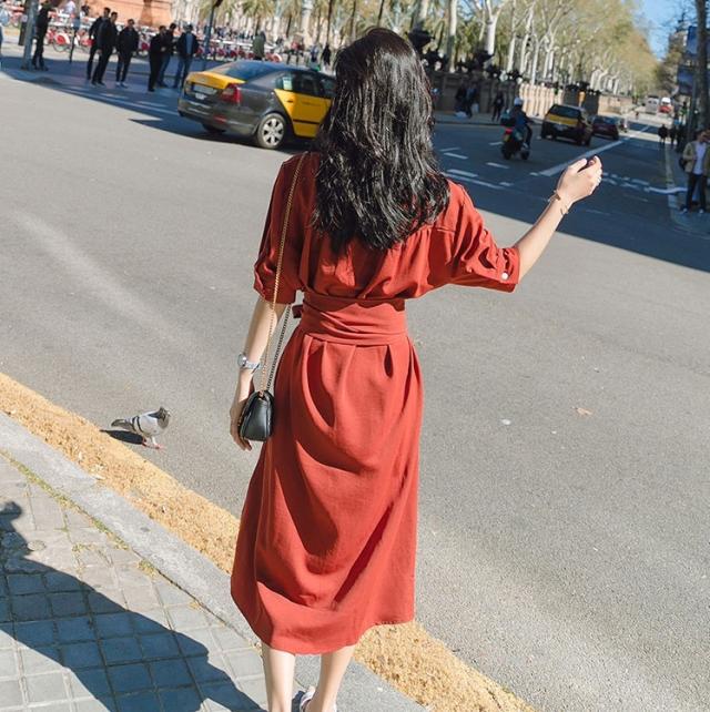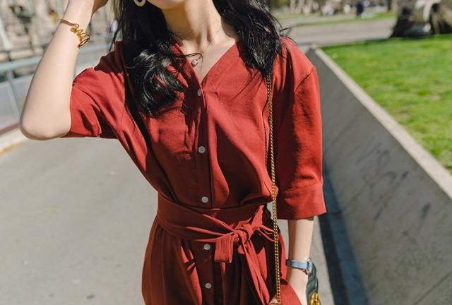 ワンピース ロング シフォン ミモレ丈 膝下 ひざ下 フロントボタン Vネック 襟なし シャツワンピ 半袖 袖あり ウエストマーク ウエストリボン ハイウエスト リボン結び ゆったり サイドスリット くすみカラー 大人カラー 大人可愛い かわいい 可愛い カジュアル 通勤 通学 学生 お出かけ デート 旅行 休日 女子会 大人女子 普段着 普段使い 10代 20代 レディース 夏 S M L XL ワインレッド ヘイズブルー