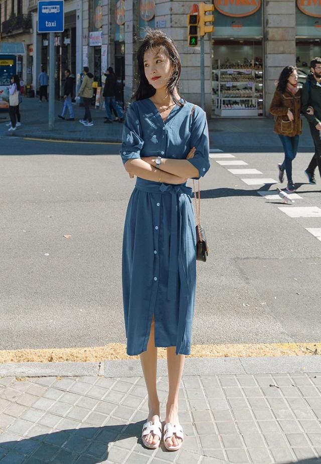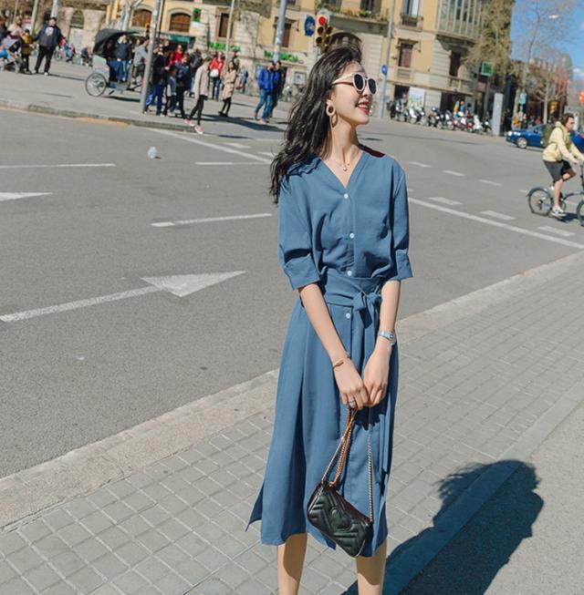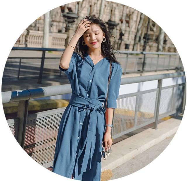 大人かわいいVネックのシャツワンピース♪