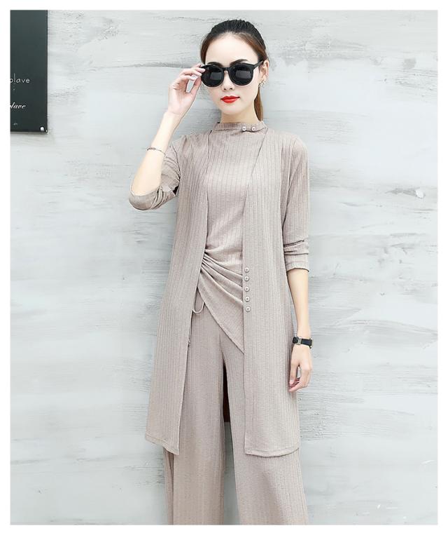 レディース3点セット 七分袖カーディガン ノースリーブトップス ワイドパンツ スリーピース リブニット 無地 薄手 お得 春 秋 大人可愛い シンプル カジュアル きれいめ 大人女子 こなれ感 クール 通勤 OL オフィスカジュアル 通学 学生 大学生 キャンパスコーデ お出かけ 旅行 リゾート バカンス 散歩 イベント パーティー 二次会 着回し カラー カーキ ブラック アプリコット サイズ展開 M L XL 2XL