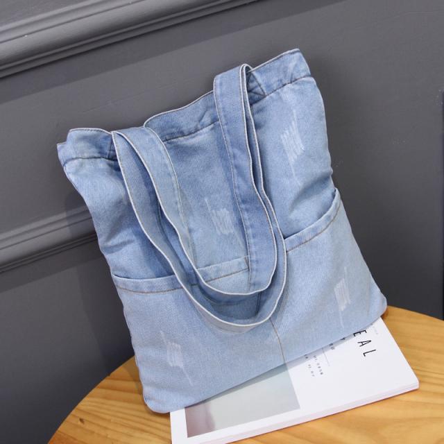 バッグ ダメージ デニム キャンバス 肩掛け bag 鞄 カバン 大容量 大きめ かばん レディース トートバッグ 柔らかい 便利 使いやすい 外部ポケット 仕切り スクエア シンプル ジッパー ファスナー 内部ポケット A4収納 ビッグサイズ お洒落 おしゃれ かわいい 可愛い オールシーズン シーズンレス 通勤 通学 学生 お出かけ デート 旅行 休日 買い物 普段使い ワンサイズ ダークブルー 紺 ライトブルー 水色