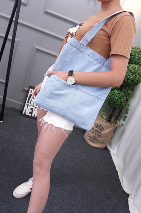 バッグ ダメージ デニム キャンバス 肩掛け bag 鞄 カバン 大容量 大きめ かばん レディース トートバッグ 柔らかい 便利 使いやすい 外部ポケット 仕切り スクエア シンプル ジッパー ファスナー 内部ポケット A4収納 ビッグサイズ お洒落 おしゃれ かわいい 可愛い オール