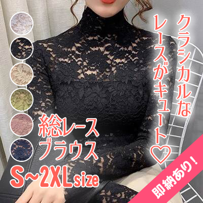 シャツ トップス レース 総レース ハイネック タートルネック 長袖 花柄 大きいサイズ スリム シースルー シアー 大人可愛い フェミニン きれいめ エレガント フォーマル セクシー お出かけ デート お呼ばれ 二次会 通勤 オフィス 春 夏 秋 冬 オールシーズン 10代 20代 30代
