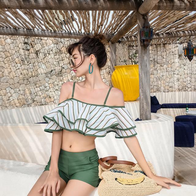 水着 3点セットセパレート タンキニ 大胆 大人 イベント リゾート インスタ映え 大人かわいい シンプル セクシー 韓国ファッション おしゃれ 大人っぽい 旅行 海 プール 夏 M L XL ホワイト&グリーン ベージュ&ブラック