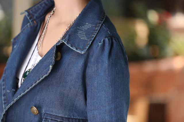 アウター デニムジャケット ジージャン コート レディース クラッシュデニム ダメージ デザイン ダブルブレスト ミドル丈 ジャケット 綿 コットン 長袖 袖あり 襟付き フロントボタン ポケット付き カジュアル 大人女子 大人可愛い 可愛い かわいい おしゃれ お洒落 通勤 通学 学生 デート お出かけ 着回し 普段着 普段使い 10代 20代 春 秋 冬 S M L XL 2XL 3XL 4XL ブルー 青