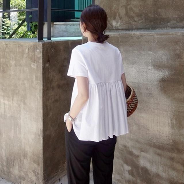 Tシャツ 半袖 トップス バックギャザー 切り替え 背面 ふんわり バックコンシャス バックシャン クルーネック ゆったり 楽ちん こなれ感 コットン シンプル カジュアル おしゃれ 体型 カバー 大人 可愛い 着回し 普段使い お出かけ ママ 公園デビュー 白 黒 大きいサイズ