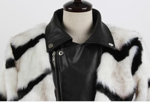 革のステッチミンクの毛皮風アウター アウター ショート ショート丈 袖あり 長袖 襟付き 切り替えデザイン ドッキング PU フェイクファー 大人 上品 おしゃれ お洒落 かっこいい 個性的 クール 存在感 ストライプ 冬 レディース デート お出かけ 女子会 休日 普段使い 韓国