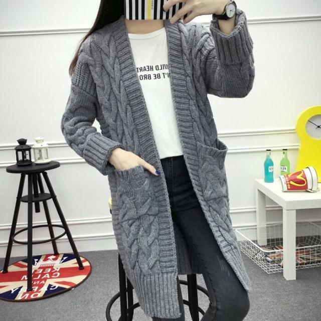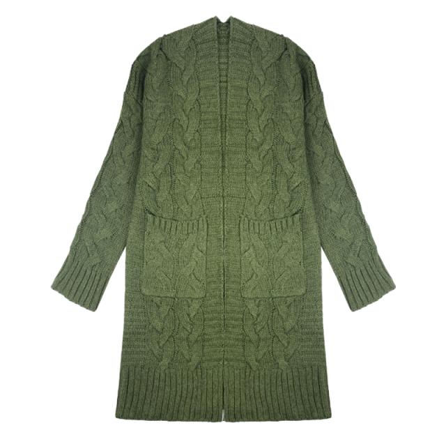 アウター 厚手 ニット コーディガン ロング ケーブル編み カーディガン ミドル丈 ツイスト デザイン 長袖 袖あり 襟なし ポケット付き ゆる ルーズ ゆったり お出かけ デート 旅行 通勤 通学 休日 学生 ママ 普段使い 公園デビュー 着回し 普段着 レディース 女性用 おしゃれ