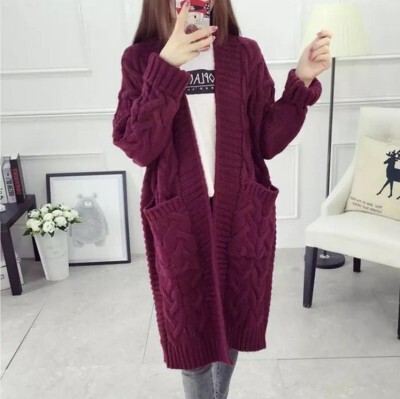 アウター 厚手 ニット コーディガン ロング ケーブル編み カーディガン ミドル丈 ツイスト デザイン 長袖 袖あり 襟なし ポケット付き ゆる ルーズ ゆったり お出かけ デート 旅行 通勤 通学 休日 学生 ママ 普段使い 公園デビュー 着回し 普段着 レディース 女性用 おしゃれ お洒落 かわいい 大人可愛い 可愛い 春 秋 10代 20代 30代 ワンサイズ バイオレッド 紫 アーミーグリーン 緑 グレー 灰色 ワインレッド