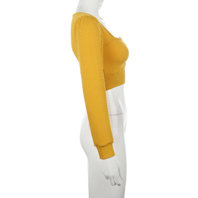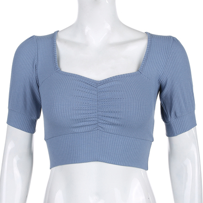 クロップド リブニット ニットソー トップス レディース ショート丈 へそ出し 胸元ギャザー ペンタゴンネック 半袖 長袖 肌見せ 伸縮性 シンプル セクシー カジュアル おしゃれ 大人 可愛い セレカジ デート お出かけ 普段使い ダンス 衣装 韓国系 白 黒 紫 青 黄色 グレー