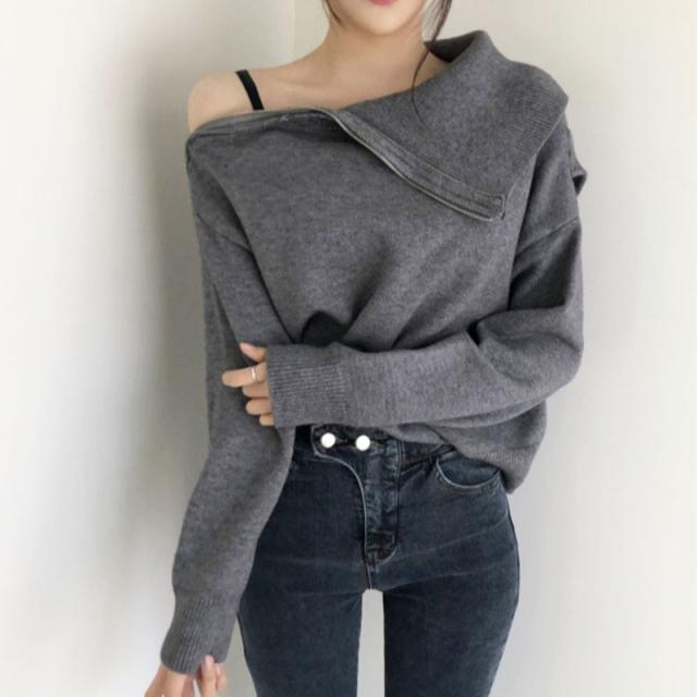 オフショルダーセーター ハイネックサイドジッパー トップス セーター ショート丈 長袖 ハイネック オフショルダー オフショル ワンショルダー ワンショル ファスナー 大人可愛い きれいめ シンプル カジュアル 大人 上品 おしゃれ お洒落 大人可愛い 大人女子 存在感 無地 秋 冬 10代 20代 30代 40代 レディース 通学 デート お出かけ 着回し 普段使い 韓国系 ファッション ブラック グレー