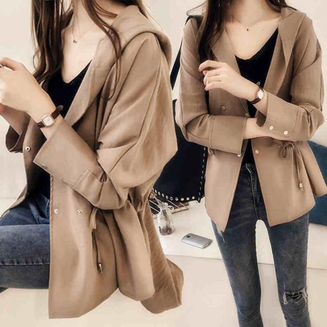 アウター ジャケット ショート コート 長袖 袖あり 襟付き フード付き ダブルブレスト フロントボタン ドロスト ドローストリング ゆったり ゆる ルーズ 大人 カジュアル おしゃれ お洒落 大人女子 シンプル 無地 通勤 通学 学生 おでかけ デート 旅行 休日 普段着 普段使い