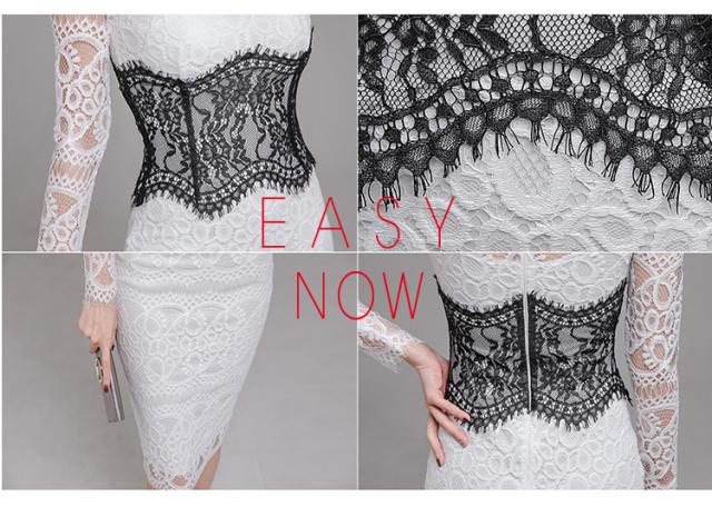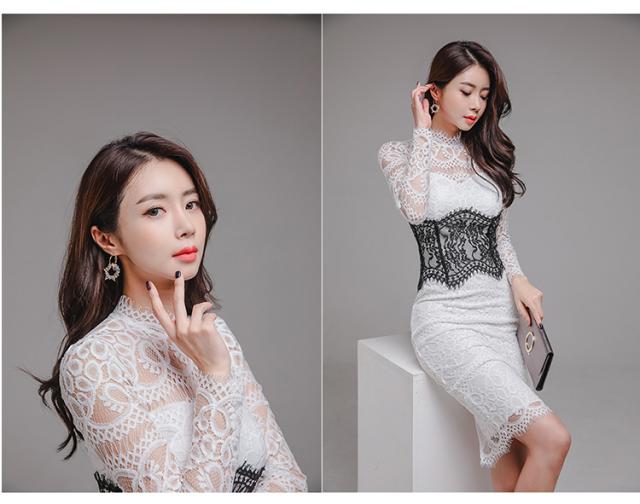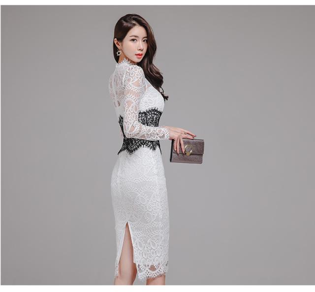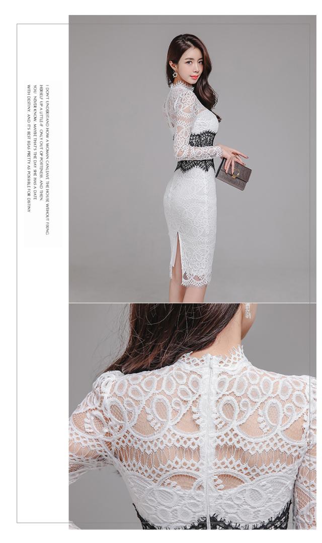 レースドレス ドレス dress ワンピース パーティードレス パーティドレス 二次会ドレス 膝丈ドレス 発表会ドレス タイトドレス Iラインドレス 膝丈 ひざ丈 ミディアム丈 長袖 ハイネック Iライン タイト スリム レース 透け感 きれいめ 上品 おしゃれ お洒落 大人女子 こなれ感 クール セクシー エレガント 主役級 存在感 抜け感 フォーマル エレガント 清楚 柄 20代 30代 40代 レディース デート お出かけ パーティー イベント 春 夏 秋 サイズ S M L XL 白 ホワイト