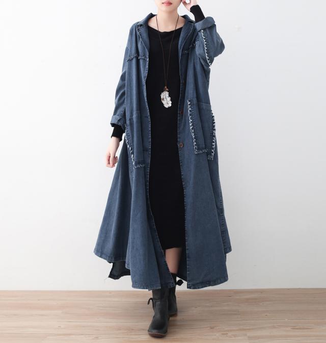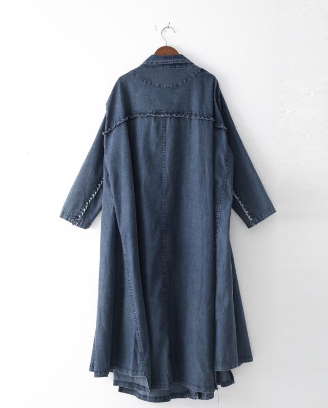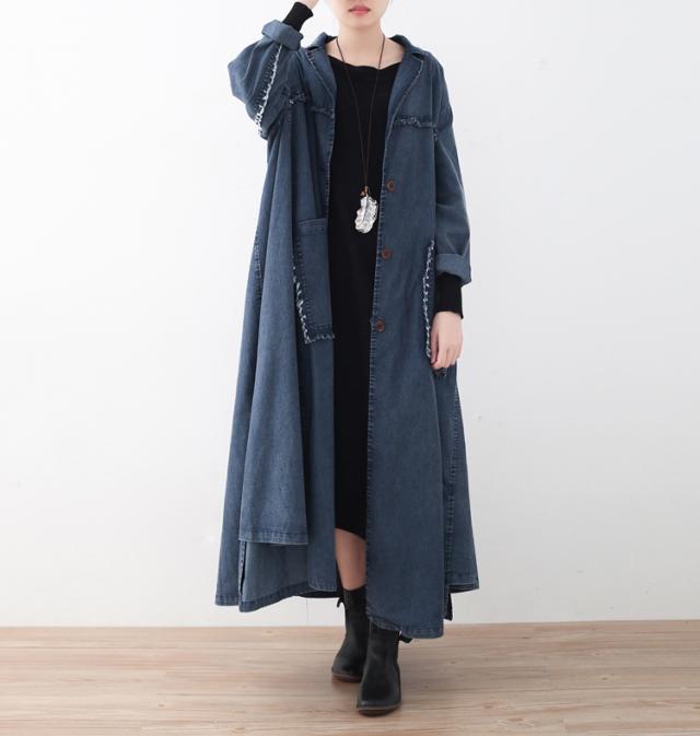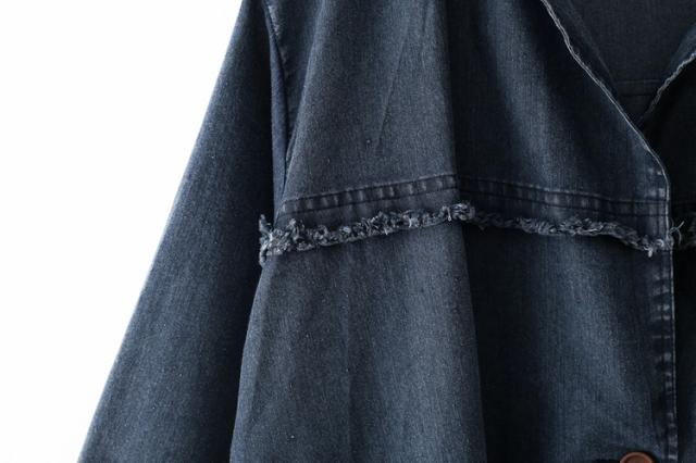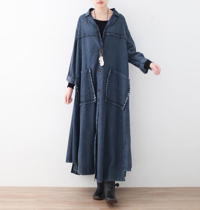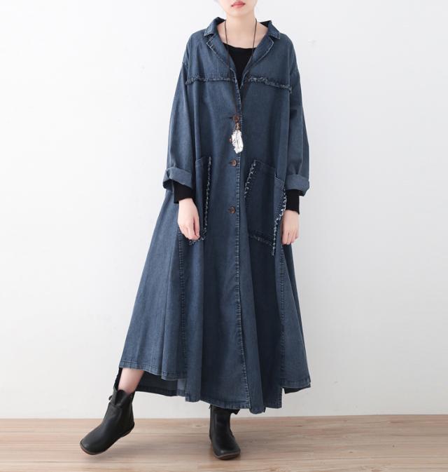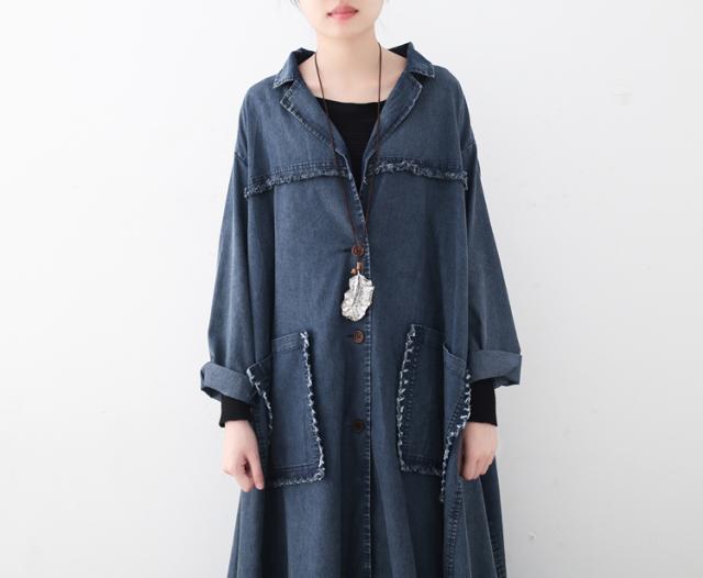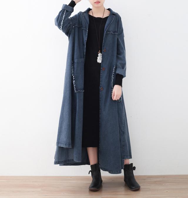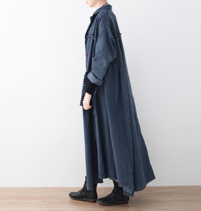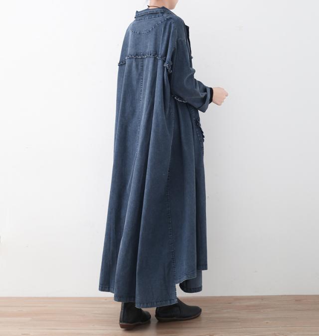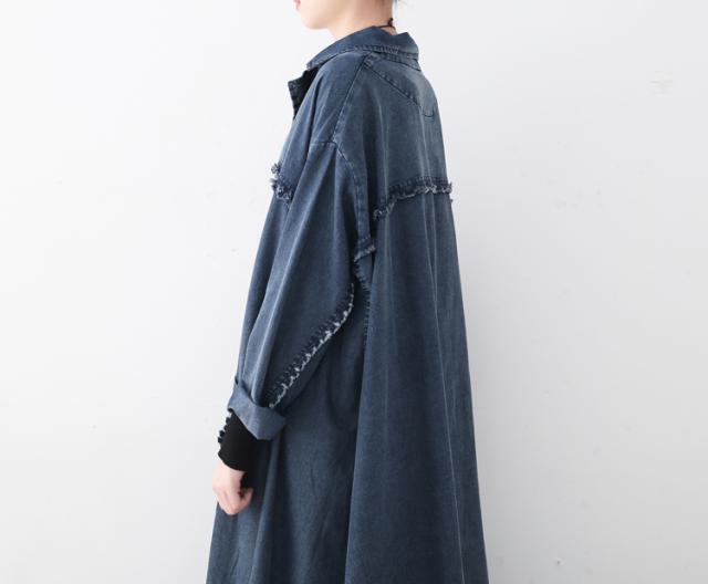 アウター デニム ジャケット ロング レディース ゆったり ルーズ ゆる フロントボタン 襟付き 長袖 袖あり ポケット付き イレギュラー アシメ アシンメトリー 無地 コットン 綿 体型カバー おしゃれ お洒落 大人 カジュアル 通勤 通学 お出かけ デート 休日 旅行 普段着 普段使い 着回し ママ マタニティ 公園デビュー 大きめ 20代 30代 40代 春 秋 ワンサイズ ブルー 青 ブラック 黒