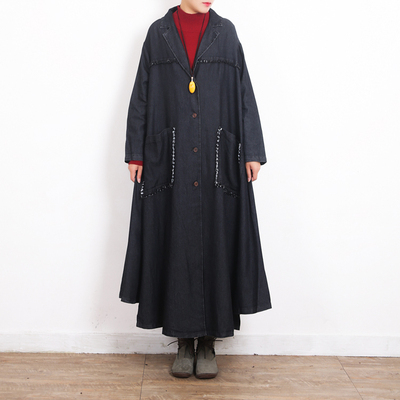 レディース アウター デニム ジャケット 人気 通販 ロング ゆったり ルーズ ゆる ボタン 襟付き 長袖 ポケット オーバーサイズ マタニティー アシメ 無地 コットン 綿 体型 カバー おしゃれ 大人 かわいい カジュアル 通勤 通学 お出かけ デート 休日 旅行 普段着 個性的 黒