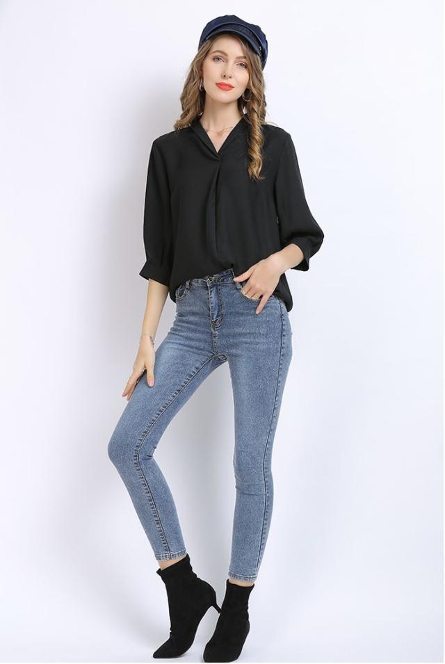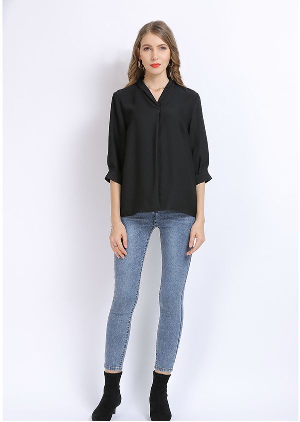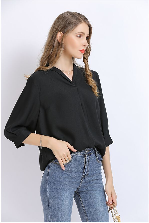レディースブラウス 七分袖 無地 Vネック シフォン プルオーバー シャツ トップス 春 秋 大人可愛い シンプル カジュアルコーデ 大人女子 おしゃれ お洒落 ラフ ルーズ モード系 フォーマル とろみ感 通勤 オフィスカジュアル OL 通学 学生 大学生 キャンパスコーデ おうちコーデ おうち時間 休日 お出かけ 旅行 散歩 デート 女子会 着回し 普段使い 大きめサイズ プラスサイズ カラー ブラック サイズ展開 S M L XL 2XL 3XL 4XL