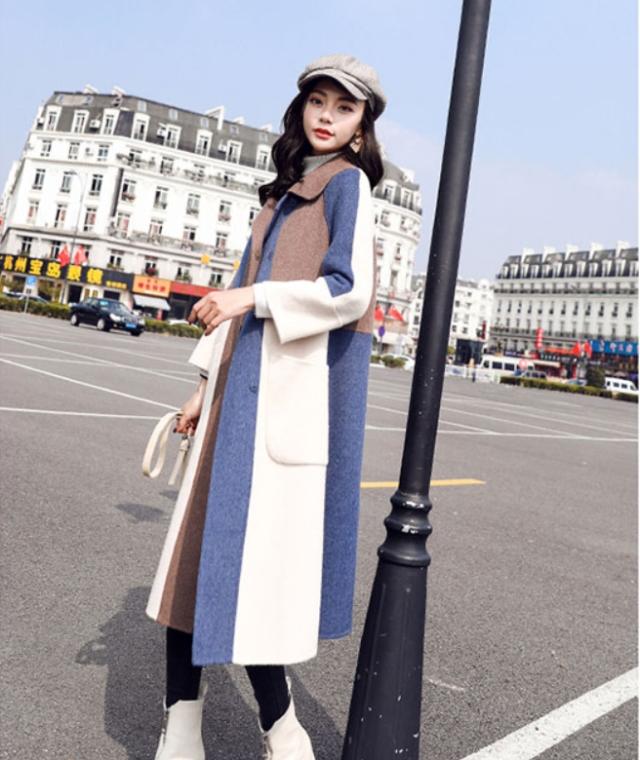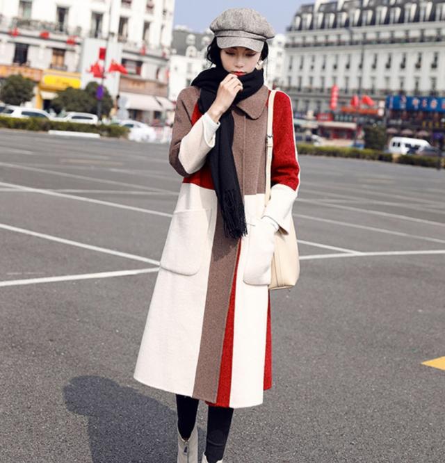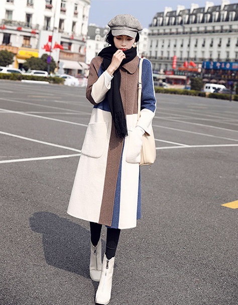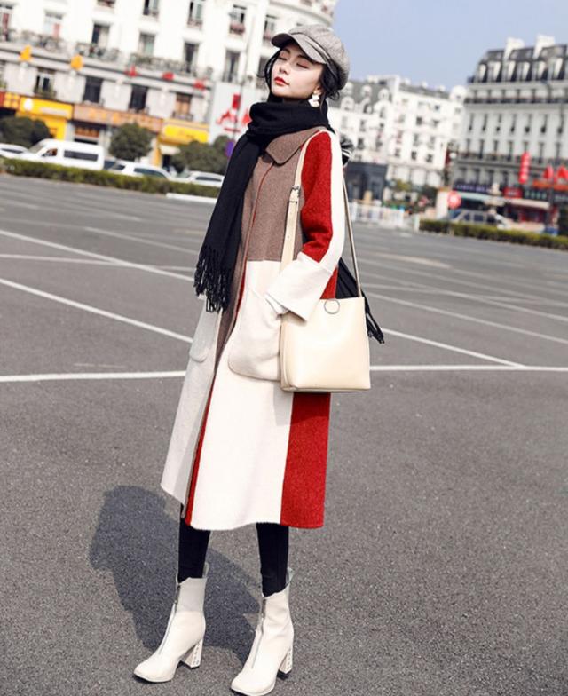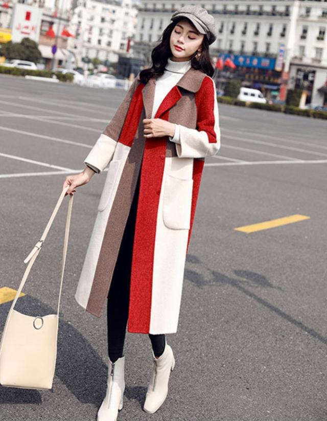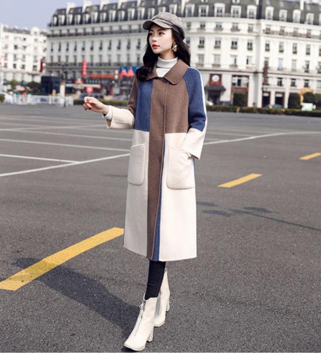 ブロック配色がオシャレなロングコート♪