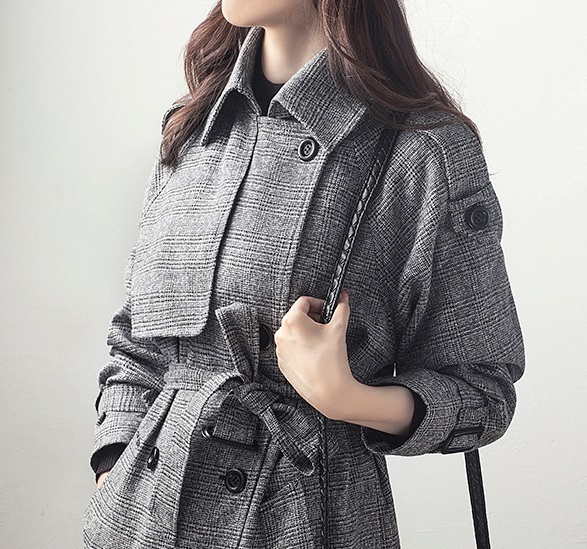 アウター レディース コート 人気 通販 おすすめ ロング ミディアム丈 厚手 ダブルブレスト ボタン 長袖 袖あり グレンチェック 綿 コットン 襟付き ポロ襟 ウエストマーク ベルト付き ポケット付き 女子 上品 大人 かわいい カジュアル 韓国 オルチャン 通勤 通学 デート