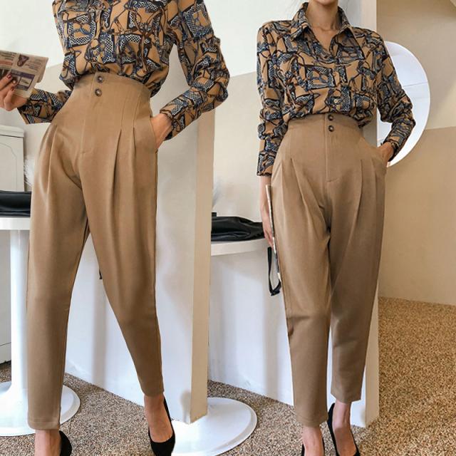 レディース ハイウエスト ブラウン パンツ ボトムス テーパード 人気 通販 おすすめ 個性的 ポケット ポリエステル きれいめ 大人 可愛い 上品 おしゃれ フォーマル 無地 春 秋 ビジネス OL 通勤 デート お出かけ 普段使い 韓国 韓国系 オルチャン 通学 旅行 ビジネス
