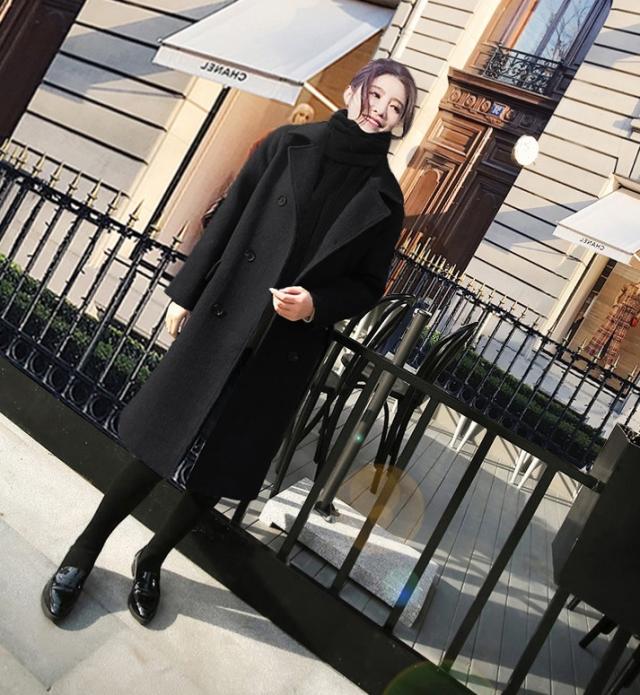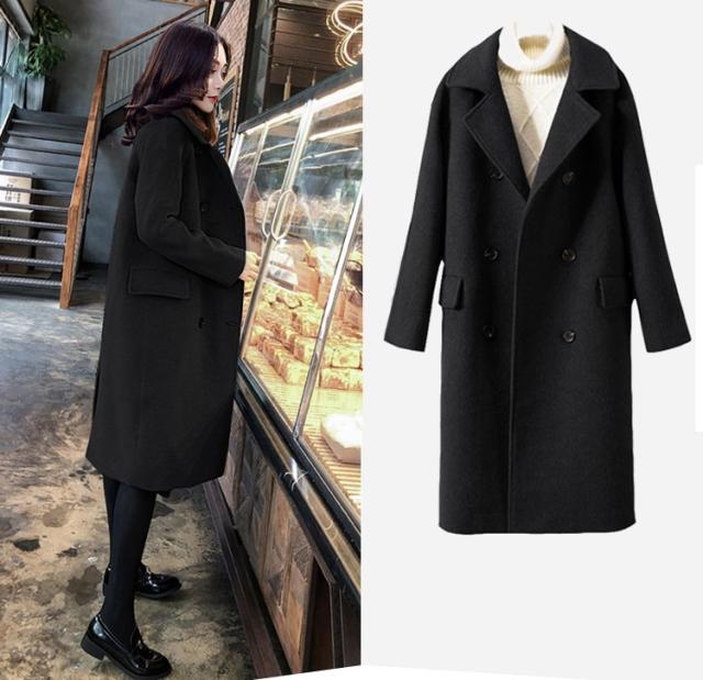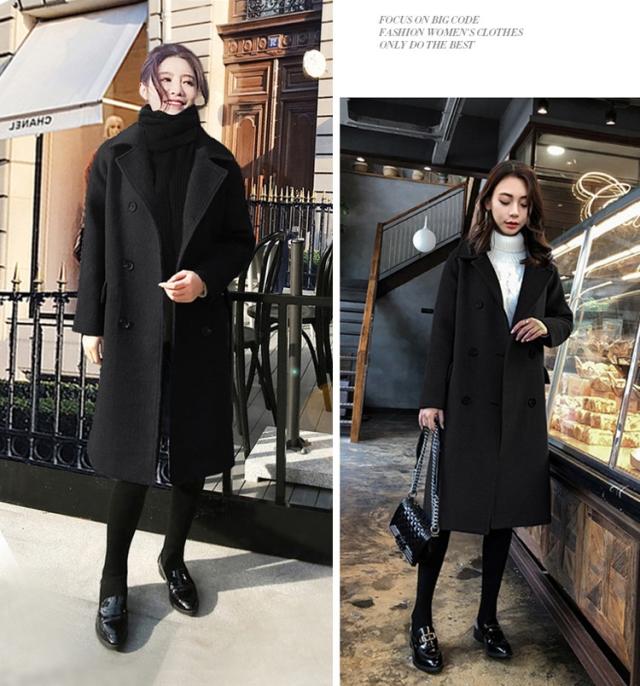レディース チェスター コート 人気 通販 ウール ロング アウター 厚い ダブルブレスト ボタン 襟付き スーツ襟 ベーシック 定番 シンプル 無地 長袖 ポケット ミディアム ゆったり 大きい サイズ 3XL 4XL 5XL 6XL 体型カバー おしゃれ 上品 通勤 通学 学生 お出かけ 黒