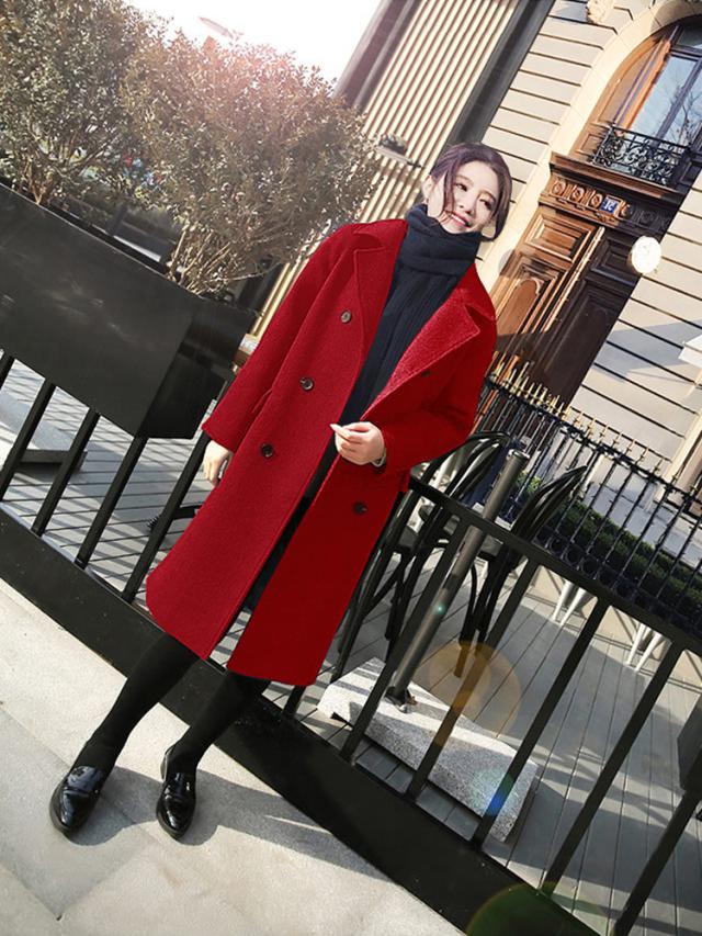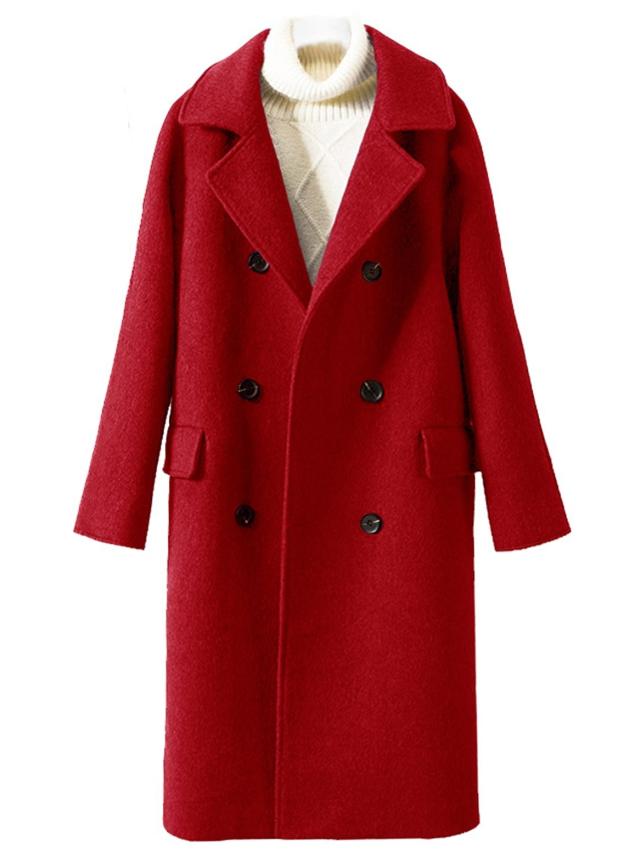 チェスターコート ウール ロング コート アウター レディース 厚い ダブルブレスト フロントボタン 襟付き スーツ襟 ベーシック 定番 シンプル 無地 袖あり 長袖 ポケット付き ミディアム ゆったり ルーズ 体型カバー お洒落 おしゃれ 大人 上品 通勤 通学 学生 お出かけ デート 旅行 休日 普段使い 着回し 普段着 20代 30代 春 秋 冬 大きいサイズ 2XL 3XL 4XL 5XL 6XL ブルー 青 ブラック 黒 レッド 赤