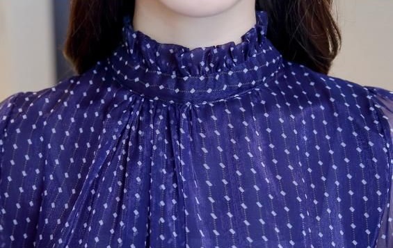 トップス シャツ ブラウス レディース シフォン ドット 水玉 シースルー 透け感 シアー 長袖 袖あり パフ袖 パフスリーブ フリル 立襟 スタンドカラー 大人女子 大人 上品 大人可愛い かわいい 可愛い レディライク 通勤 通学 OL オフィス 女子会 お出かけ デート 旅行 休日 普段使い 着回し 春 秋 大きいサイズ S M L XL 2XL ホワイト 白 ブルー パープル