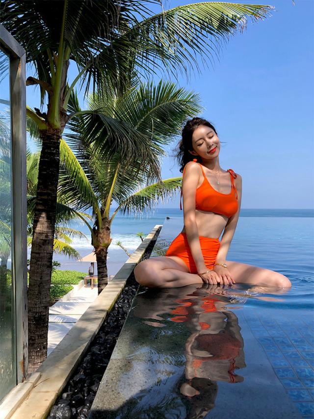 水着 ビキニ 紐ビキニ パッド付き 紐 リボン スリット 胸元 谷間 谷間魅せ 盛れる 上下セット 大人可愛い セクシー sexy シンプル 大人っぽい おしゃれ ラブリー キュート アジアン 無地 10代 20代 レディース 夏 海 ビーチ プール リゾート 韓国 韓国系 サイズ S M L XL 色展開 ホワイト ブラック オレンジ