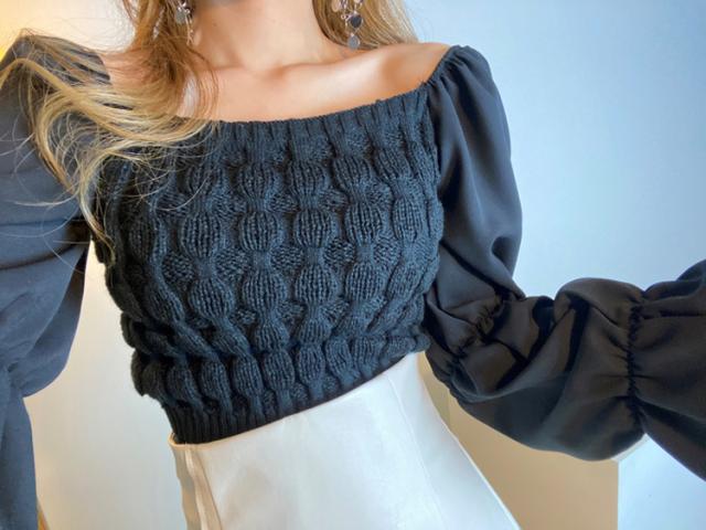 シフォン スリーブ セーター セーター 人気 通販 おすすめ 個性的 ミニ丈 ショート丈 袖あり 長袖 パフスリーブ キャンディースリーブ スクエアネック オフショルダー シフォン 大人 可愛い きれいめ シンプル 大人女子 ラブリー キュート ガーリー 通勤 通学 デート 白 黒