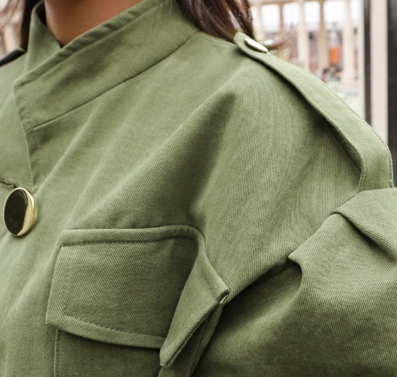 レディース アーミー グリーン セット アップ ジャケット スカート 人気 通販 ミニ 丈 ショート 個性的 袖あり 長袖 ハイネック ポケット 2点 ツーピース 大人 可愛い おしゃれ クール 秋 冬 10代 20代 30代 ママ デート お出かけ 休日 韓国 系 オルチャン 通学 デート