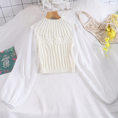 レディース シフォン ステッチ セーター トップス 人気 通販 ショート丈 袖あり 長袖 ボリューム袖 ハイネック シフォン 編み込み 透け感 シースルー ニット きれいめ シンプル 大人 可愛い 上品 おしゃれ ラブリー キュート ガーリー 秋 10代 20代 30代 デート お出かけ