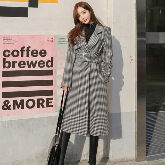 レディース 千鳥格子 ミドル丈 コート 人気 通販 アウター 個性的 膝下 袖あり 長袖 襟付き ベルト ウエストマーク きれいめ 大人 上品 おしゃれ モード系 フォーマル 秋 冬 ビジネス OL 通勤 デート お出かけ 旅行 女子会 休日 普段使い 韓国 韓国系 通学 20代 30代 黒