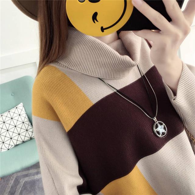レディースポンチョ風セーター マント ハイネック タートルネック 長袖 ボリューム袖 サイドスリット ボーダー チェック チュニック丈 秋 冬 大人可愛い カジュアル ルーズ 個性的 存在感 主役級 お出かけ 休日 女子会 イベント お揃い 双子コーデ ゆったり おしゃれ お洒落 カラー ブラウン+イエロー ブラウン+レッド ブラック+イエロー ブラック+レッド サイズ フリーサイズ