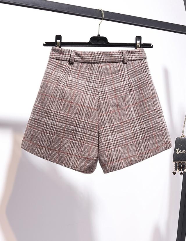 セットアップ ニットセーター × ショートパンツ ツーピース 上下セット 2点セット 袖あり 長袖 半ハイネック 伸縮性 ワイドレッグ パンツ グレンチェック 大人可愛い かわいい 可愛い 通勤 通学 お出かけ デート 女子会 旅行 普段使い 着回し レディース ファッション コーデ 10代 20代 秋 冬 S M L ブルー 青 カーキ チェック柄