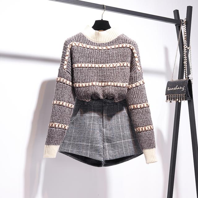 ニットセーターとグレンチェックのショートパンツの2点セット♪