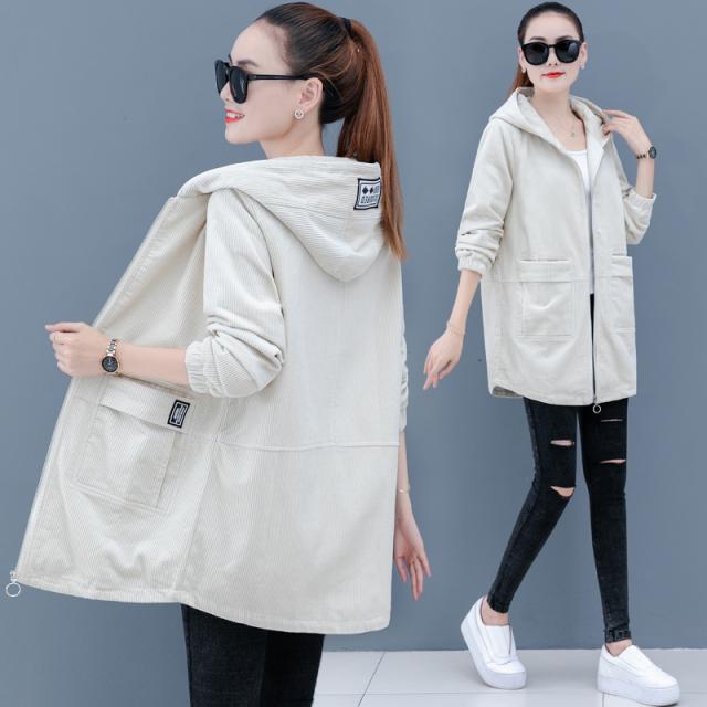 ウインドブレーカー 秋 レディース 白 おしゃれ 暖かい 大きいサイズ 防寒 コーデュロイ ミドル丈 コート フード付き ルーズ アウター ジャケット 上着 ミディアム 長袖 シンプル カジュアル かっこいい こなれ感 ラフ ボーイッシュ スポーティー クール 無地 学生 通学